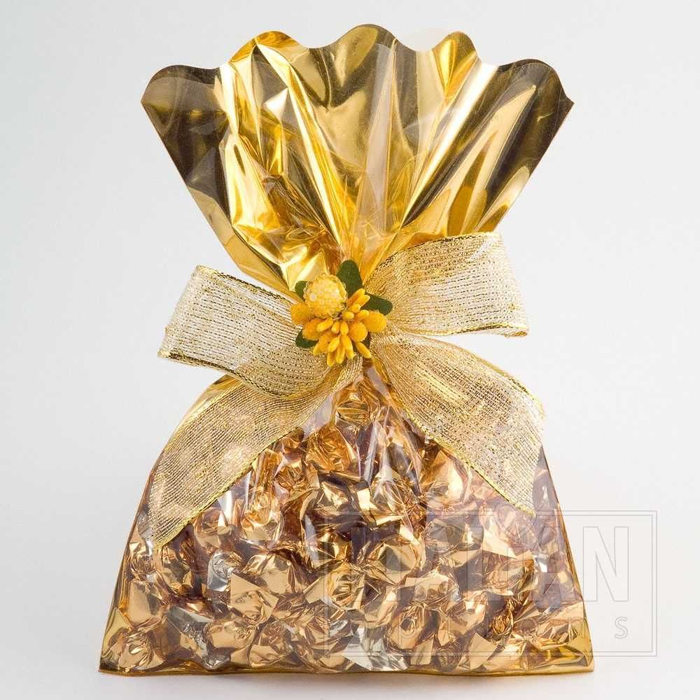 Clear fronted gold foil gift bags