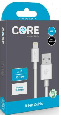 Core 8-Pin Cable 2m TPE White 2.1A/10.5W