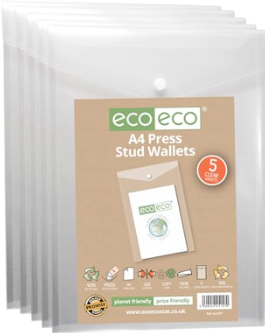 Pack 5 A4 95% Recycled Portrait Press Stud Wallets