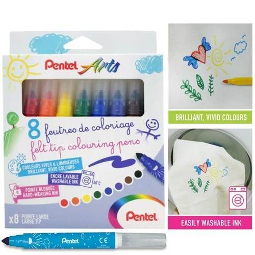 PENTEL ARTS BROAD TIP COLOUR PENS SET 8